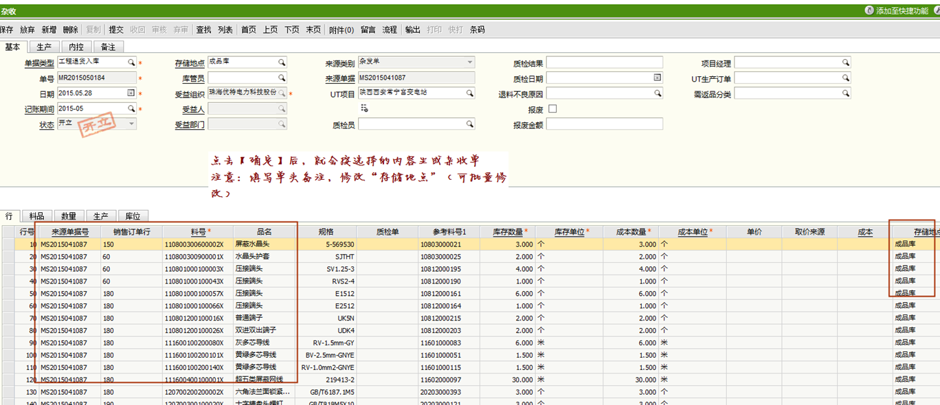 需求: 生产部对于改制或返工MO多余的,无法经过【生产退料】的材料,生产必须创建【杂收】【生产退料入库】单据进行退库,在杂收单中,必须指定MO单号,单据提交后,程序就可以进行核减,但是该单据不能删除(特殊情况需经财务同意,刘军特殊处理)。http://netserver/tech/UToffice/DateTaskMeetPrint.aspx?id=4766