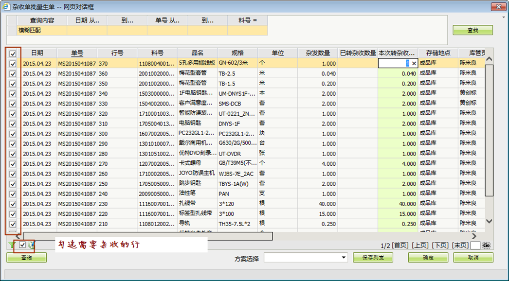 如果该行需要核减,需要将扩展字段【待核减】打√