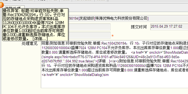 库存单据审核时报:出库库存单位数超过当前库存可用数量
